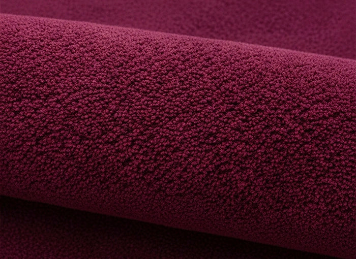A deep burgundy pink saturates the surface in a single bold tone. The square form intensifies the impact, giving the color a sculptural presence in the room. Hand-tufted in wool, it’s a modern piece where hue takes center stage.