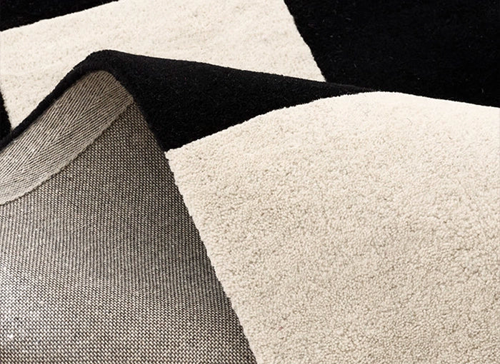 Black and White Big Checkered Hand-Tufted Wool Rug