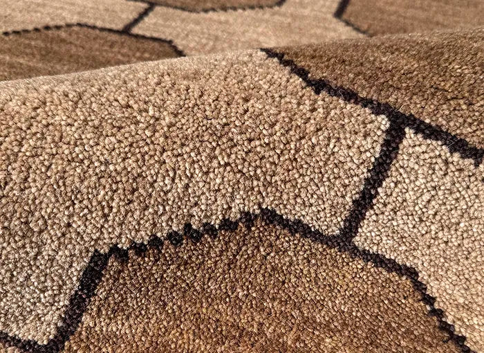 Taupe Octagon Link Hand-Knotted Wool Rug