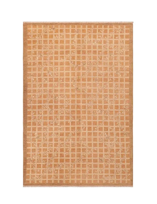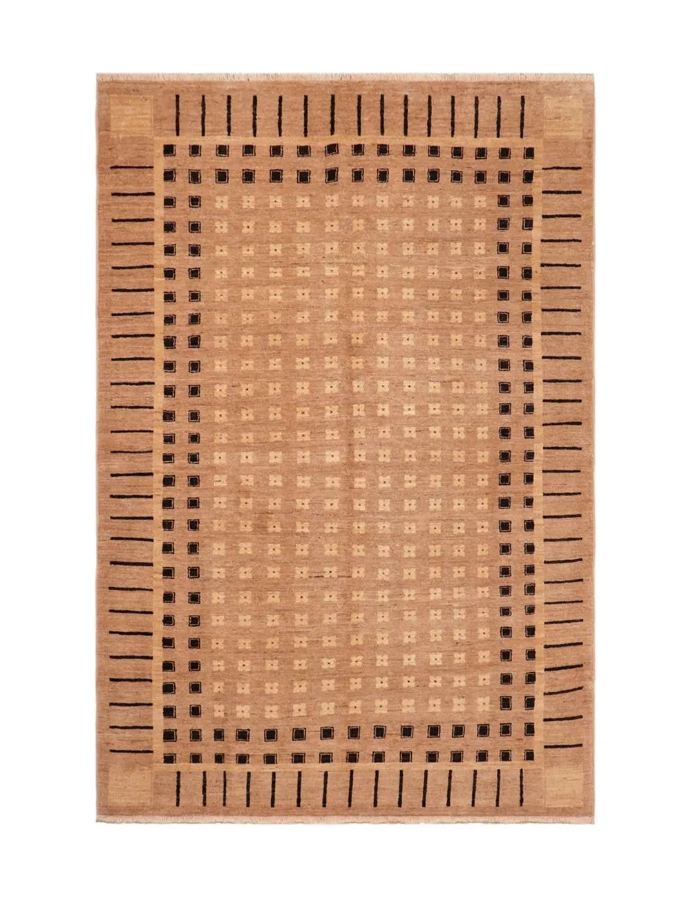 Brown and tan abstract wool rug, earthy modern area rug for boho living rooms