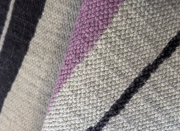 A genuinely handwoven rug is produced by a weaver working warp and weft on a loom — interlacing horizontal threads through vertical ones to build the textile structure row by row. The design is created within the weave itself: the pattern isn't applied to the surface but built into the construction, which gives it a structural integrity that printed or tufted surfaces don't have. Jubi's woven rugs are produced by master artisans in Bhadohi, India, in premium New Zealand wool — using the same warp-and-weft construction that has defined handwoven textile traditions across cultures for thousands of years.